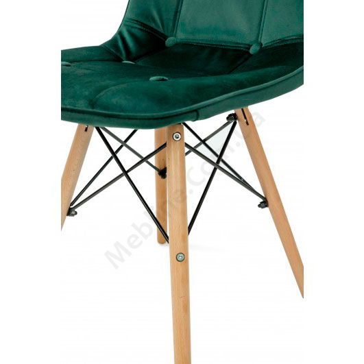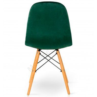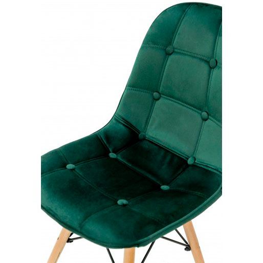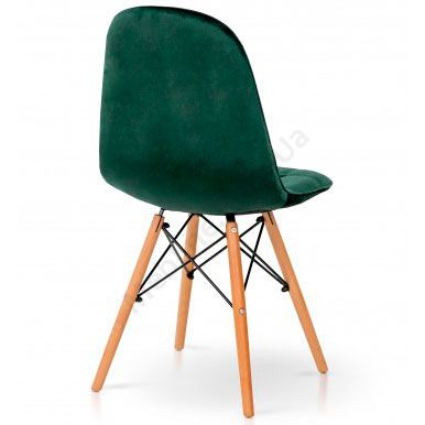 М’який стілець на дерев’яних ніжках з оббивкою зеленого кольору.