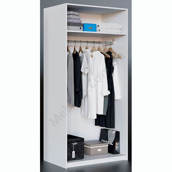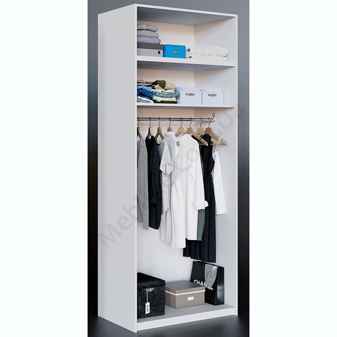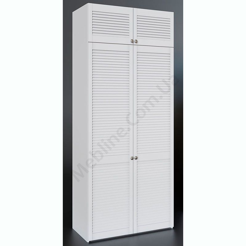 Дводверна шафа зі штангою, полицею та жалюзійними фасадами.