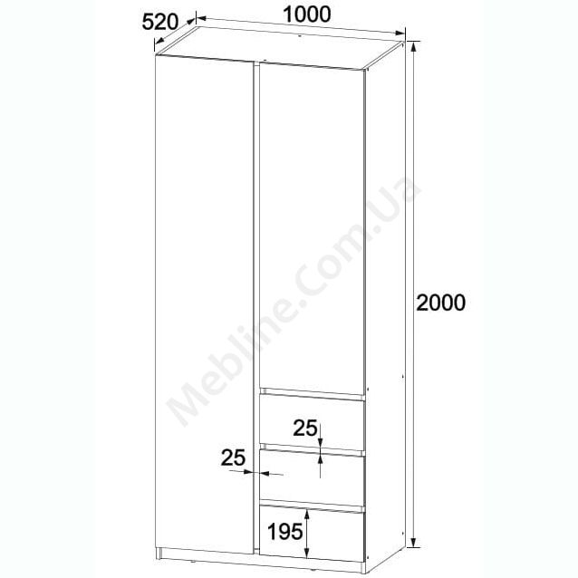 - За одними дверцятами штанга для одягу та дві полиці.