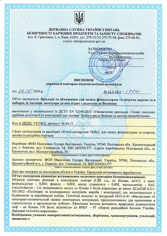 Має найширший асортимент спортивних комплексів, дитячих куточків та спортивних снарядів в Україні.
