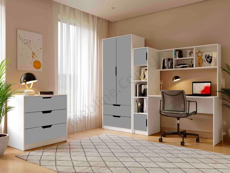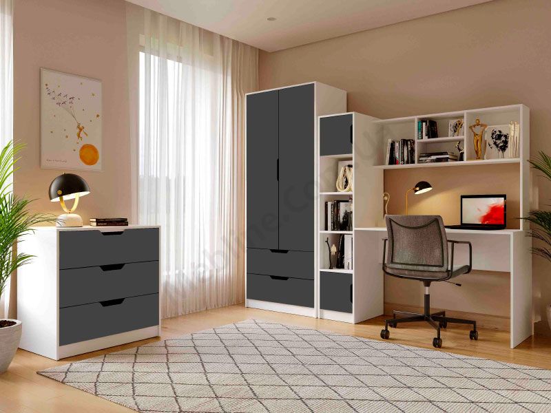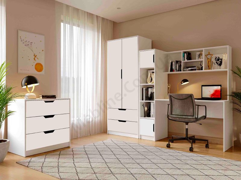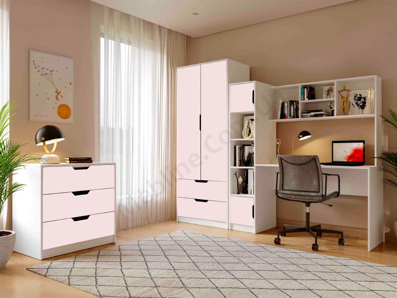 В колекцію Teenager входять необхідні меблі для функціонального облаштування дитячої або підліткової кімнати — шафа, комоди, письмові столи з місцем для зберігання та пенал з відкритими секціями. Ліжко можна обрати з колекції Bed Room, воно чудово впишеться в загальний інтер’єр.