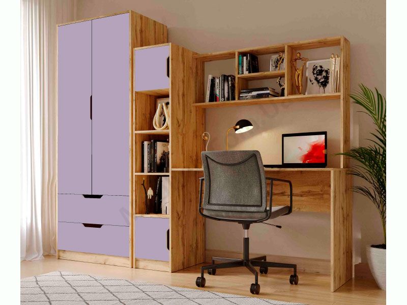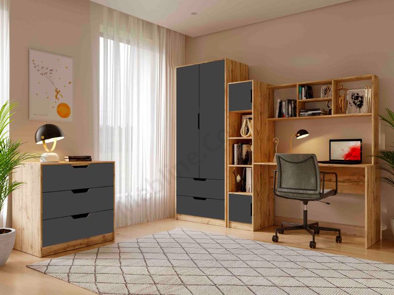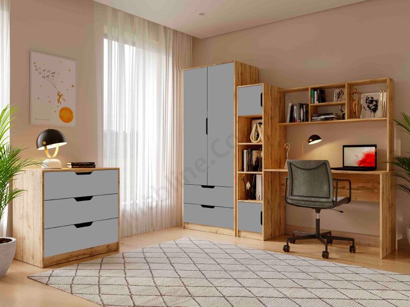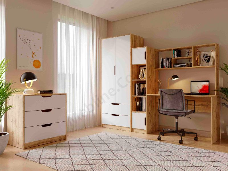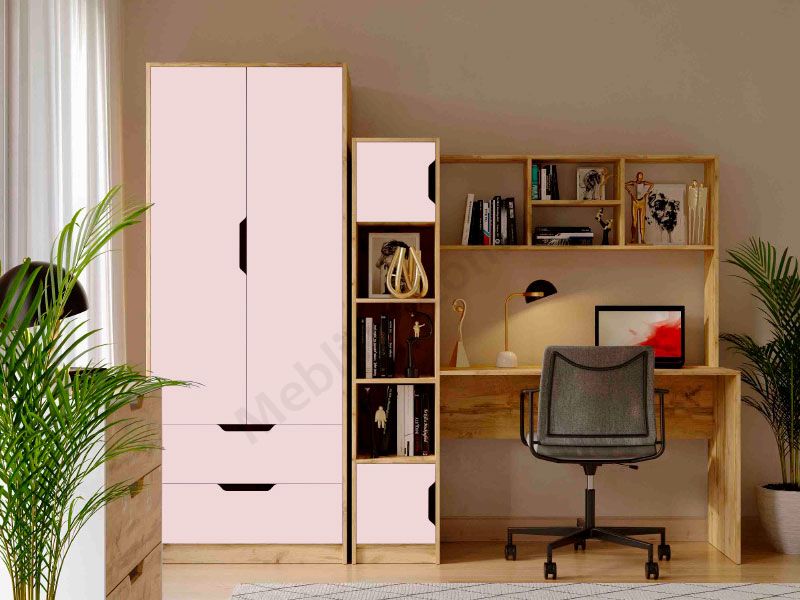 В колекцію Teenager входять необхідні меблі для функціонального облаштування дитячої або підліткової кімнати — шафа, комоди, письмові столи з місцем для зберігання та пенал з відкритими секціями. Ліжко можна обрати з колекції Bed Room, воно чудово впишеться в загальний інтер’єр.