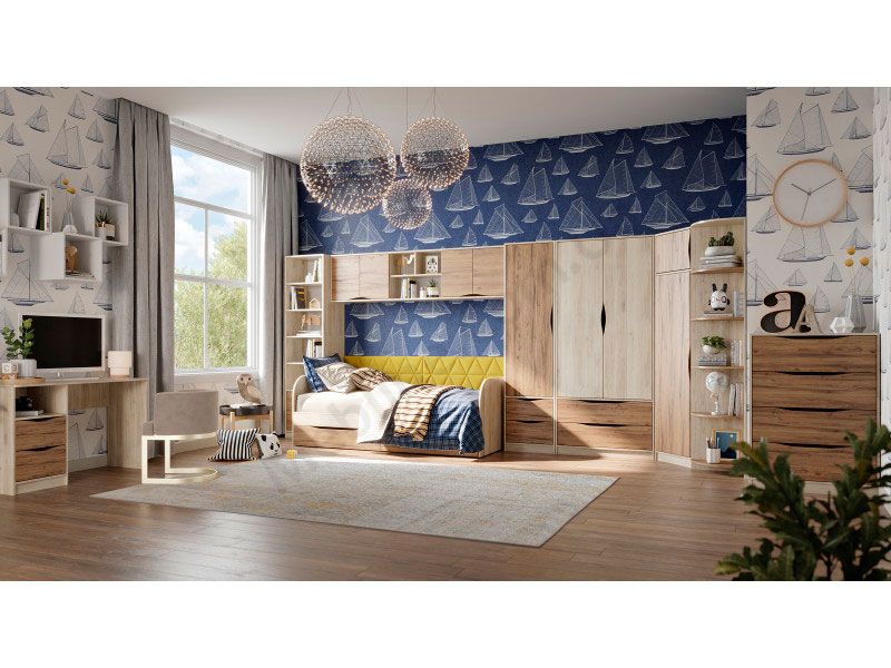 У колекцію входять необхідні для кімнати меблі — ліжко, комод, стелаж, полиці, столи та шафи. Можна доукомплектувати ліжком Л-7 90х190 см.